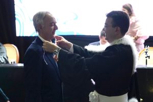 O conselheiro Antonio José Guimarães foi agraciado com o Colar do Mérito Institucional, a mais alta distinção concedida pelo Ministério Público do Estado do Pará (MPPA), durante Sessão Solene do Colégio de Procuradores de Justiça em homenagem ao Dia Nacional do Ministério Público. A solenidade foi realizada na manhã de sexta-feira (12), no auditório Nathanael Farias Leitão, na sede do MPPA, em Belém. Na ocasião, o conselheiro também compôs a mesa de honra da cerimônia.